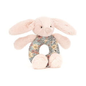 Grzechotka króliczek pudrowy róż 14 cm