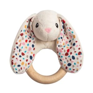 Miękka grzechotka z główką Królisia, idealnie nadaje się do malutkich rączek niemowlaka. Delikatne grzechotanie wspiera rozwój sensoryczny dziecka. Idealna zabawka do pierwszej wyprawki!